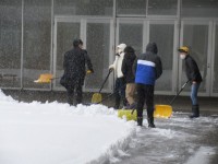 冷たい雨の降るグラウンドに、冬の桜の木の様子を観察にくる子どもたちでした。