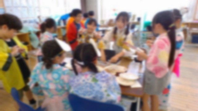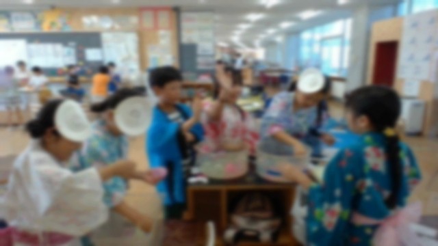 みんなで準備した夏祭りが行われました。ヨーヨー屋さん、なんちゃって食べ物屋さん、お面屋さんなど9つのお店があります。看板や地図、チケットなどもみんなで準備しました。今回はクロムブックを使ってオリジナルの電子マネーも導入することになりました。お面のコーナーは自分で作ることができたり、イラストのリクエストもできます。なんちゃって食べ物屋さんは、くじ引きがついていて、食べられない代わりにポイントがもらえる仕組みになっています。どのお店も工夫を凝らしています。