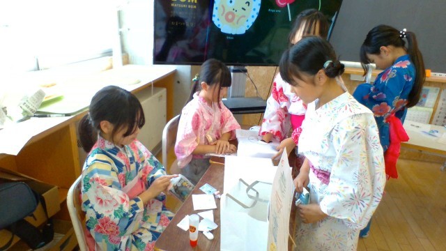 他にもおみくじ屋さんや射的屋さんなどいろいろなお店があります。お店屋さん役と、お客さん役を前半と後半で行い、みんなが楽しめるように工夫しました。お店に行くとスタンプがもらえるカードもつくり、どのお店も賑わうようにしました。昨年度のお店よりもさらにパワーアップしており、子どもたちの成長を感じました。