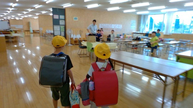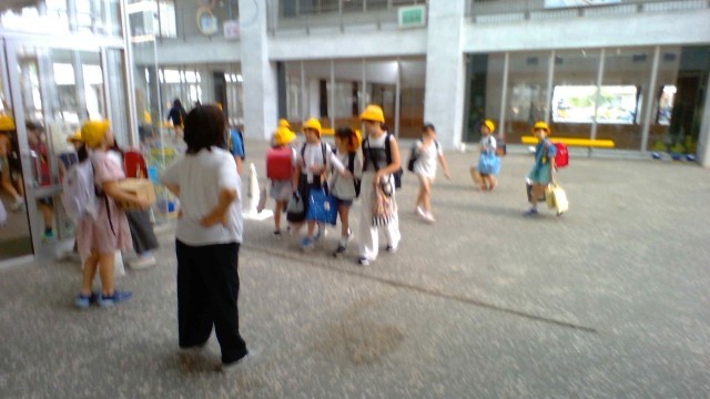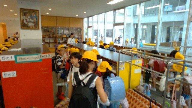 7時45分に児童玄関が開くと、子どもたちが元気な挨拶をしたり、友達と会話をしたりしながら校舎へ入ってきました
