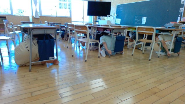 子どもたちは緊急地震速報を聞くと、素早く避難行動をとりました