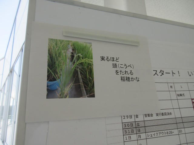 そこに先生の言葉「実ほど こうべをたれる 稲穂かな」