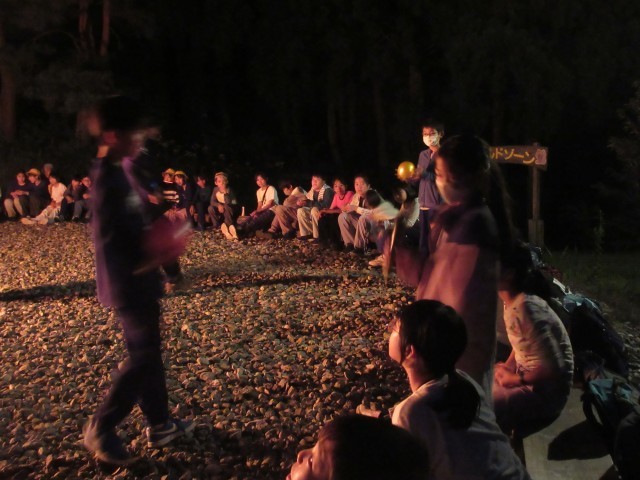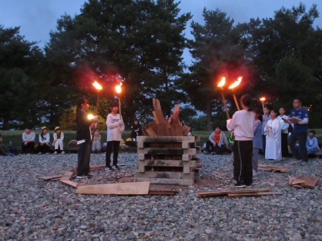 1日目の夕方には、キャンプファイヤーを行いました。自然の中でみんなで炎を囲み、1日を振り返ったり楽しい時間をゲームをして過ごしたりしました。