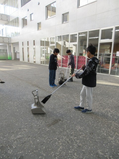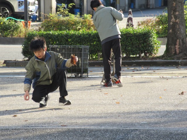 次々落ちる落ち葉を拾い、砂を集める・・・