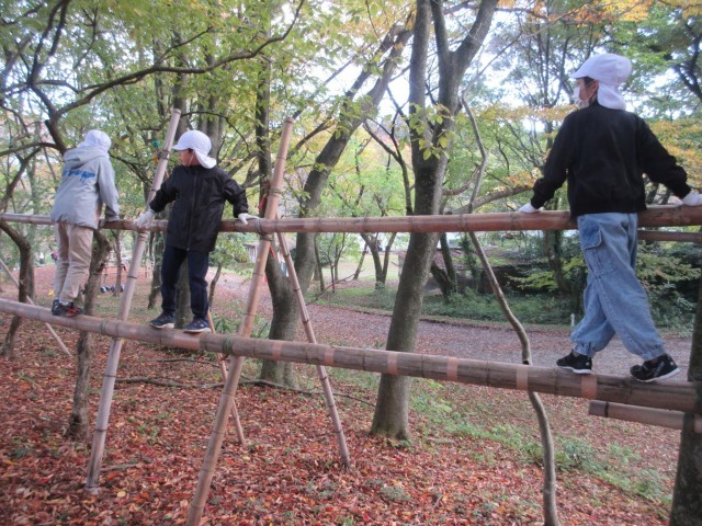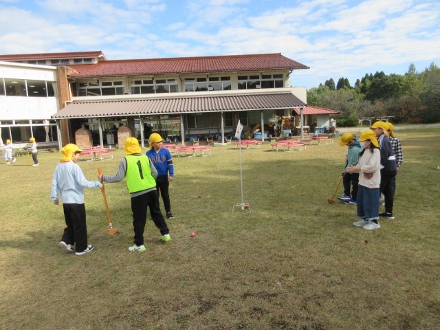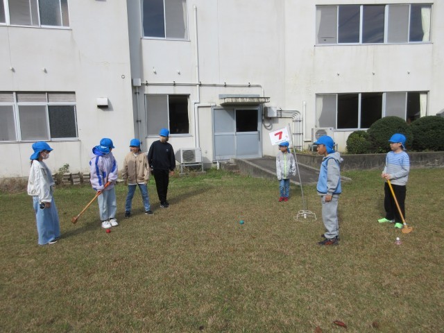 11月6日、7日に呉羽青少年自然の家へ宿泊学習に行ってきました。写真は1日目の、森のアスレチックとグラウンドゴルフの様子です。グラウンドゴルフの準備や片付けは活動係が責任をもって頑張りました。そのおかげもあり、みんな元気に楽しく活動することができました。