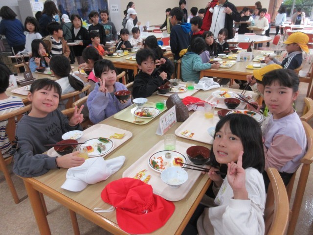 4年生は、宿泊学習で元気いっぱい活動しました。1日目の昼食は、お家の方が作ってくださったおいしいお弁当を食べました。2日目の朝食と昼食は食堂でカレーやオムレツをいただきました。食堂ではドリンクバーで好きな飲み物を飲むことができたことも、楽しみの一つでした。