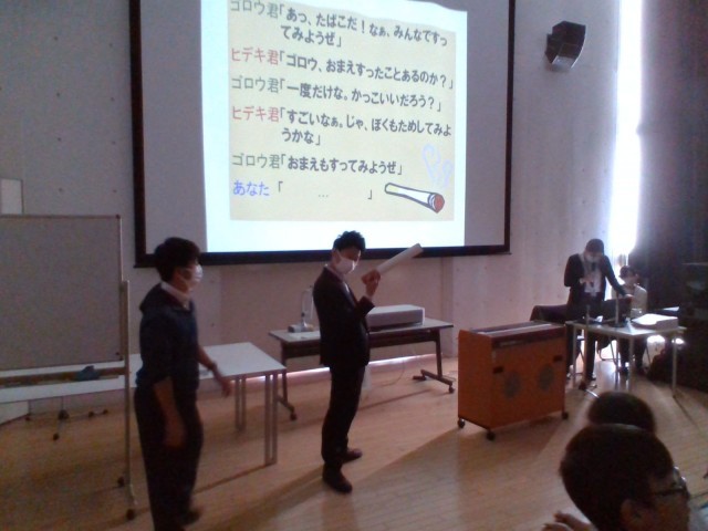 4年生は、「いきいき健康教室」に参加しました。たばこが体にどのような影響を及ぼすのかを教わったり、たばこを吸うように誘われたときにどのように断ったらいいのか考えたりしました。クイズや劇を通して楽しく学ぶことができました。