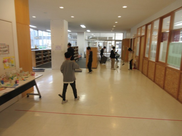 避難訓練が終わると、どうしても校舎内には砂汚れが見られます