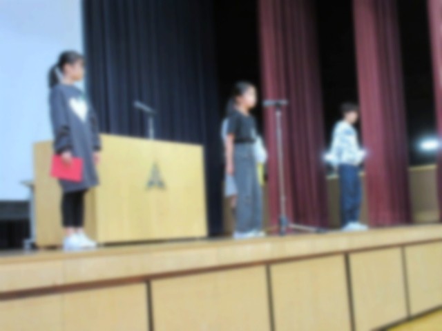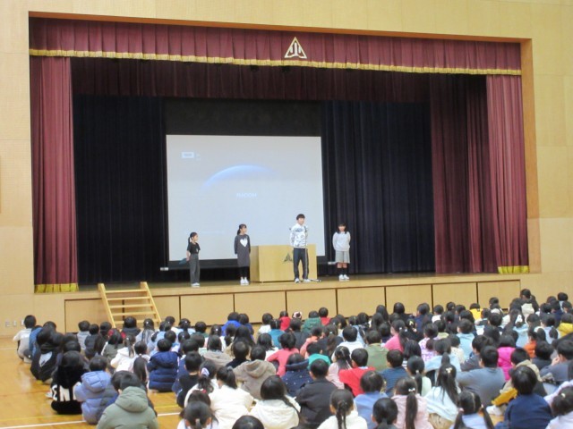 終業式後に、代表の子どもたちが2学期に頑張ったことを発表しました