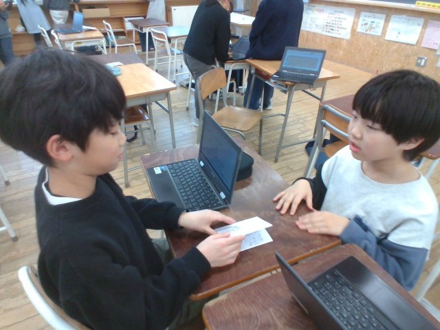4年生は総合的な学習の時間に「世界満福計画」というテーマで、1学期は「環境」2学期は「福祉」について考えてきました。「ふだんの くらしを しあわせに」を合言葉にだれもが幸せで笑顔で暮らすことができる社会を目指して一人一人が課題を設定し追究してきました。2学期の最後に、それぞれが調べたことや考えたことを伝え合いました。