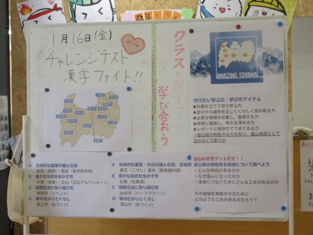 今日の4年生のホワイトボードには、漢字への挑戦、社会科への関心を促す掲示がされていました。
