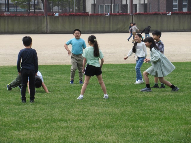 休み時間のグラウンドでは、子どもたちが思い思いに遊んでいます。
