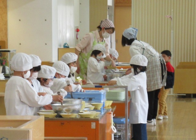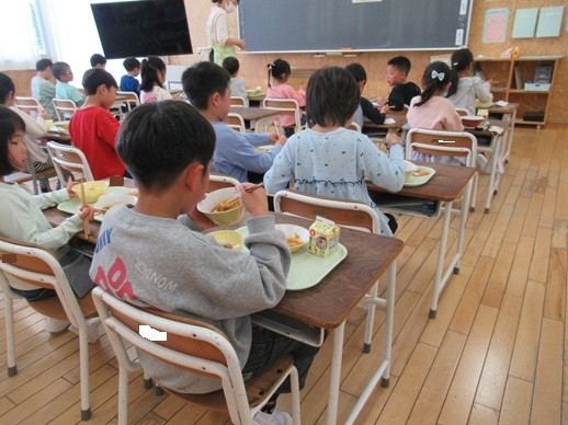 1年生も、自分たちで配膳をして、おいしく給食をいただきました。