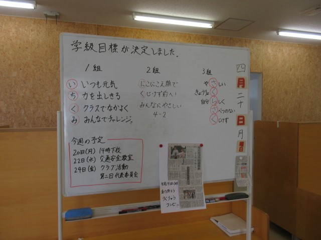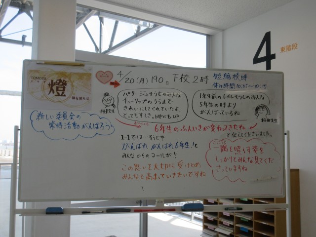 各学年の入口には、今日も先生から芝園っ子へのメッセージが所狭しと書かれています。