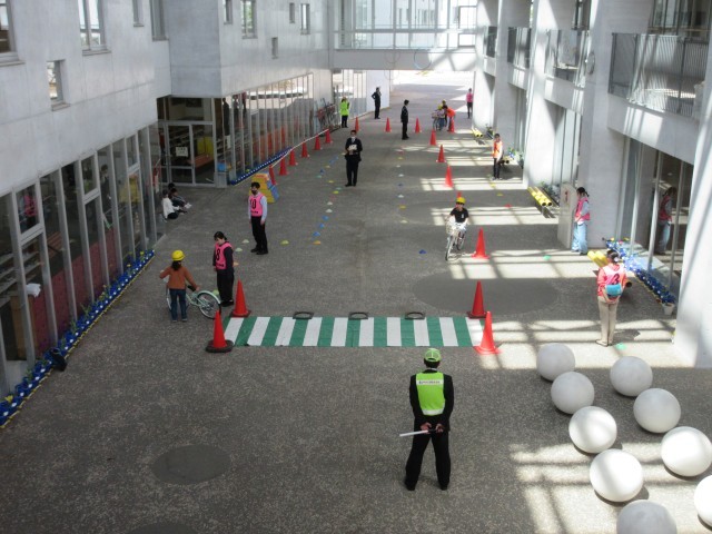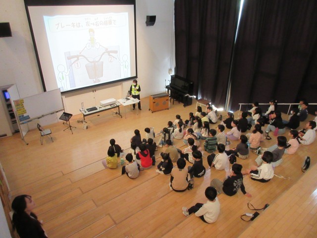 警察の方や市役所の方、PTAボランティアの方から交通ルールや実技練習における注意点を教えていただきました
