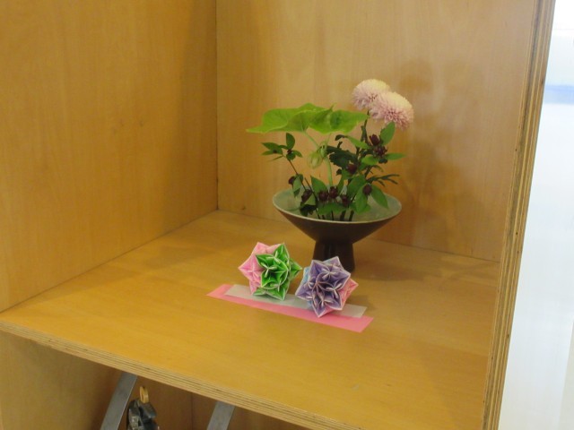 玄関の一角に、みずみずしい花が生けられています。