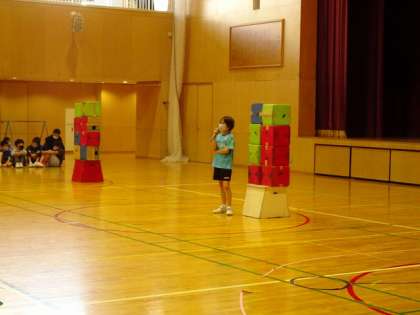 5年生の運動委員が企画した学年集会を行いました。その名も「ザ!アスレチック・アドベンチャー」です。クラス対抗でしたが、それに関係なくクラス間で応援し合う姿も見られ、とても温かい雰囲気に包まれました。