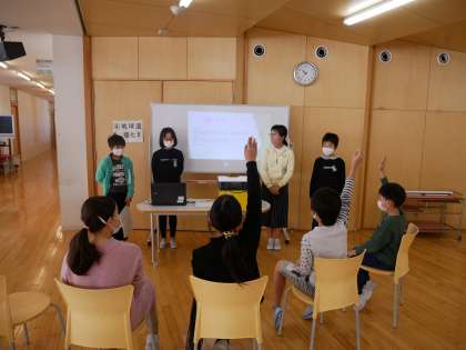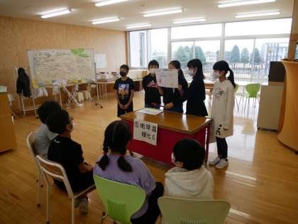 5年生の総合の発表は、4年生の社会科の学習と関連していたり、身近な環境問題を扱ったりしていました。クイズや実験、実物があり、子供たちは、5年生の工夫した発表に引き込まれ、興味津々の様子でした。