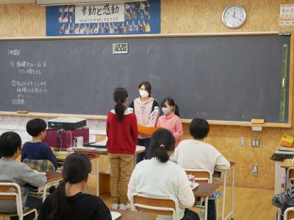 先日、総合の発表に招待してもらったお礼に手紙を書きました。代表の子供が5年生に渡しに行き、感謝の気持ちや、感想を伝えました。