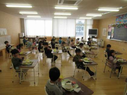温かい給食で心も身体もぽかぽかです。