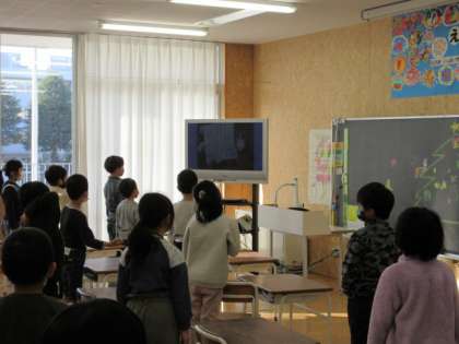 終業式はビデオ放送で行われましたが、子どもたちは2学期のことを振り返りながら真剣に話を聞いていました。