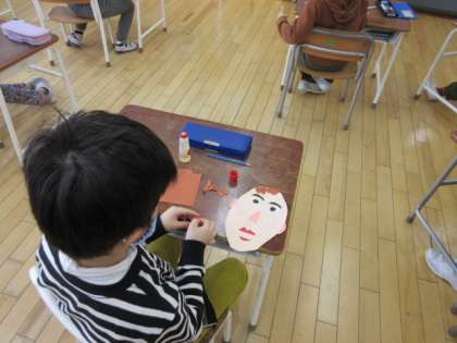 図画工作科の学習で作っている「顔」が少しずつ進んでいます。