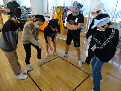 算数科で、平方メートルや、ヘクタールなど、大きな面積を表す単位について学習しました。実際に1平方メートルの大きさをテープで測ったり、教室や黒板の縦と横の長さを測って面積を計算で求めたりしました。また、身近な環水公園や、芝園小学校の敷地面積や、ディズニーランドや富山市の面積を調べました。大きさのイメージを実感しながら楽しく学習しました。
