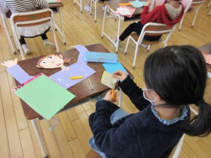 顔にも表情が表れ、一人一人のよさが出ています。洋服にも模様を付け、明るい仕上がりになるようにしています。