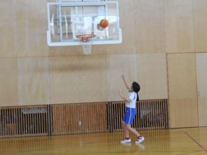 5年生の子供たちは、寒さに負けず、元気いっぱいです。体育の学習では縄跳びの技を磨いたり、バスケットボールのシュート練習をしたりしています。