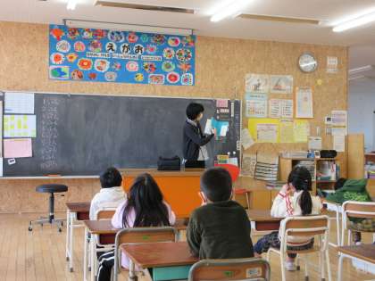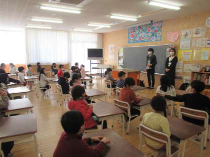 富山市立図書館の方が学校に来られて、声で聞く読み聞かせや、本の紹介をしていただきました。