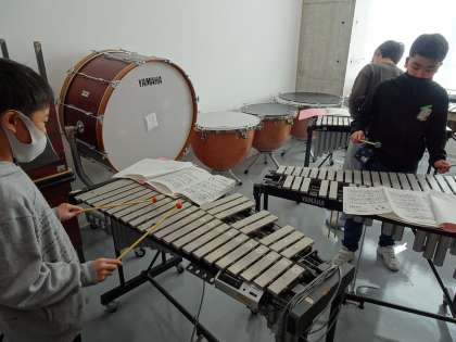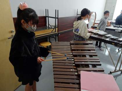音楽科の学習の時間に「茶色のこびん」の合奏に取り組んでいます。木琴や鉄琴のパートの練習をしました。美しい音色になるように、鍵盤を打つ位置に気を付けながらリズムよく演奏できるようにがんばっています。