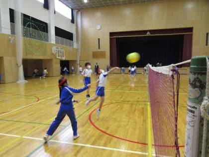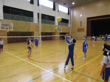 練習を重ね、少しずつラリーが続くようになってきました。試合の中で力強いアタックが見られると、歓声が上がりみんなで盛り上がっています。