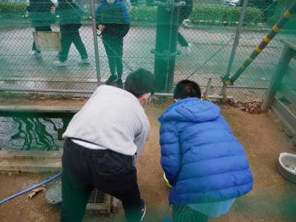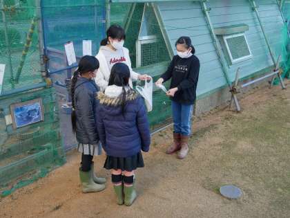 飼育栽培委員会の常時活動を体験している様子です。
