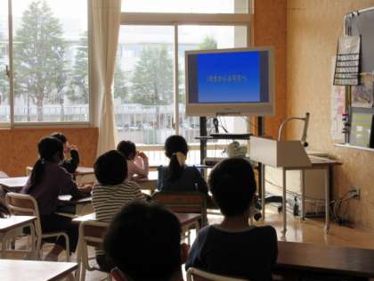 1年生は、6年生へのメッセージをみんなでビデオ撮りしたものと、6年生にメダルを渡したときの写真を編集して放送しました。全学年のメッセージを見ながら、お世話になった6年生さんが本当に卒業されるのだなと話をする子供たちもいました。