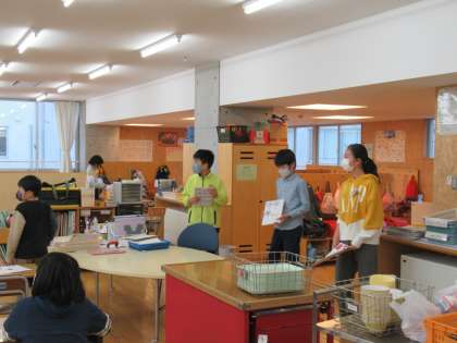 卒業プロジェクトで、「3年生になったら」をテーマとし、2年生にアドバイスしようと準備をしてきました。3年生から始まる理科や社会、筆を使った書写の授業などポイントを絞ってアドバイスする事典を作りました。昨日の卒業を祝う会でのお返しとして、2年生のみんなに渡しに行きました。6年生として下学年のためにできることを少しずつ伝えることができています。