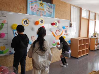 明日は卒業式。5年生は、お世話になった6年生への感謝の気持ちを込めて校舎内の清掃や体育館の会場準備等、一人一人が真剣に取り組みました。明日は式には参加できませんが、家からお祝いの気持ちを送ろうと話し合いました。