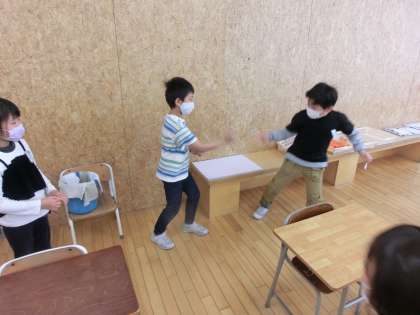ALTの先生と一緒に、英語の学習を行いました。動物の名前を英語で言ったり、じゃんけんゲームをしたりして、英語に親しみました。