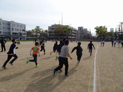今日から、朝トレがスタートしました。久しぶりの外で、子供たちは気持ちよさそうに全力疾走しました。