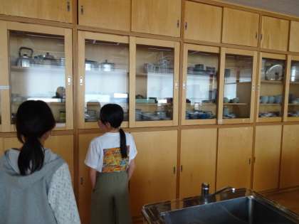 高学年になり新しく始まる家庭科の学習を子供たちはとても楽しみにしていました。初回は、教科書を見ながらどんな学習をするのか見通しをもち、家庭科室の探検をしました。それぞれに調理や裁縫など新しく始まる学習に期待を膨らませていました。