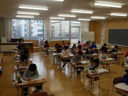 3年生から新しく学力調査というテストがあります。初めてのテストの形に子供たちは戸惑いながらも一生懸命取り組んでいました。