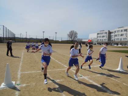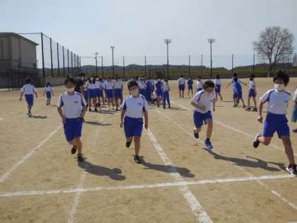 昨日の雨から一転。今日はとてもよい天気で、絶好の体育日和でした。青空の下、久々に思いっきり走る子供たちの顔は、とても気持ちがよさそうでした。
