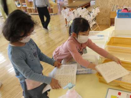 入学式から1週間が過ぎた1年生です。学校生活にも慣れ、明るく落ち着いて生活しています。毎朝登校すると、下足箱にきちんと外履きを入れて内履きに替えています。ランドセルの整頓も一人でできるようになりました。連絡帳や提出物も忘れずに出しています。困ったときには6年生のお兄さん、お姉さんが優しく助けてくれます。今日も気持ち良く一日が始まります。