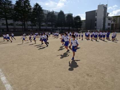 5年生はグラウンドで50メートル走をしました。初めに、走り方を確認しながら練習をして、タイムを測りました。朝のトレーニングでの積み重ねと、追い風も助けとなり記録が伸びたとよろこんでいる子がたくさんいました。4年生の時に比べて走り方が力強くなっていました。