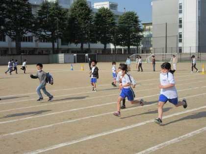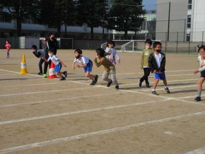 子供たちは、朝のトレーニングに意欲的に取り組んでいます。友達や先生と競争しながら楽しそうに走る様子が見られました。