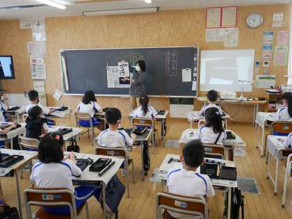 3年生になって初めての書写がありました。3年生から毛筆の学習が始まるため、子供たちは自分の習字道具を持ってきてわくわくしていました。今日は、道具や道具の使い方の確認をしました。いよいよ次から墨汁を使って書き始めます。