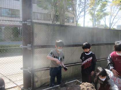 理科の学習でヘチマの種を植えました。班のメンバーと協力しながら上手にヘチマの種を植えることができました。これから大切に育てていきます。