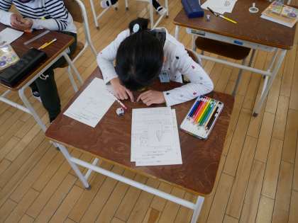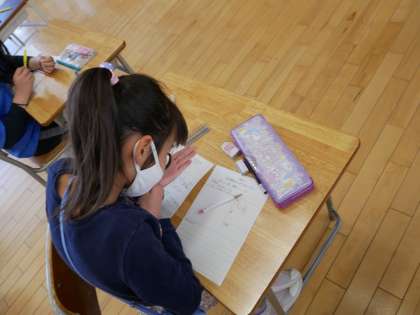 理科の学習では植物の種を観察しました。ホウセンカ、ピーマン、ヒマワリ、オクラ、それぞれの種を虫眼鏡で詳しく観察し、観察カードに記録しました。これから育てる植物も決まり、植えるのを心待ちにしている子供たちです。