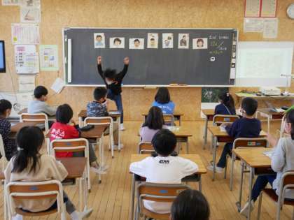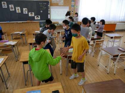 今日の外国語活動では、How are you?の表現を使って、相手の調子を聞いたり、それに対してFine.などの調子をジェスチャーを交えて答えたりしました。最後に、それらの表現を使ったじゃんけんを友達と行い、今日も楽しそうな様子でした。