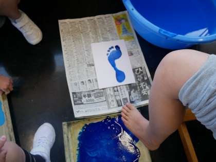 3年生は学級目標の周りに手形や足形を掲示することになりました。2組では足形に挑戦しました。足の裏にインクがつくことに、最初は抵抗がある様子でしたが、どんどんインクを付けていくうちに、笑顔があふれてきました。学級目標の完成が楽しみです。