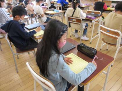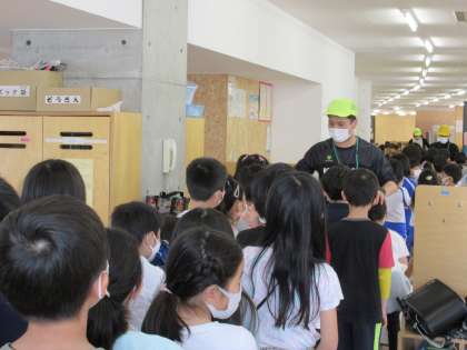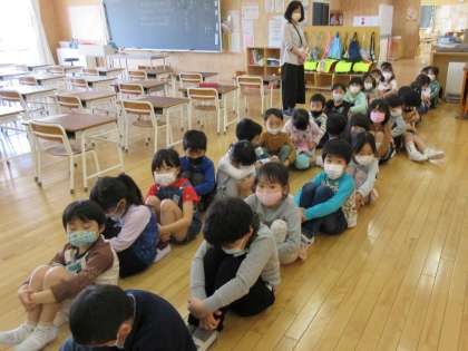 第1回避難訓練が行われました。避難の放送が入ったら子供たちは活動を止め、火事を知らせる放送を静かに聞きました。そしてクラス毎に並んで担任の先生の点呼を受ける練習をしました。1年生は初めての避難訓練でしたが、真剣な表情で取り組んでいました。訓練の後には教室で振り返りを行い、安全な避難行動の大切さを確かめました。